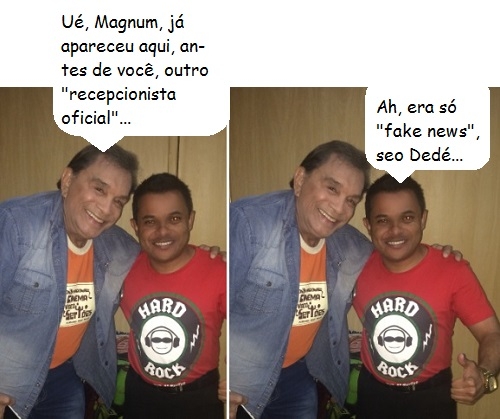Boca Santa já mostrou o humorista Dedé Santana fazendo pose ao lado do vereador Edilson Martins. O "eterno trapalhão" veio para participar do circo Ferrari. Mas fique tranquilo, que o "recepcionista oficial" de Campo Mourã, Magnum Alves, não deixou de cumprir sua função, não. Afinal, ele é "oficial", o resto é "fake"...