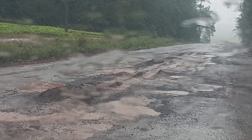 Situação da PR-180, com buracos no trecho que liga Quarto Centenário a Goioerê. "Tiraram um asfalto bom para por um de quinta categoria", frisa o vereador Yuri Cardoso Caires, de Quarto Centenário.