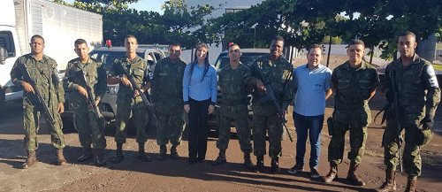 O que é isso? Forças Armadas (e bem armadas!) em Campo Mourão? Sim, mas calma, que não foi nenhuma operação de guerra. São integrantes da Marinha, que estiveram nesta quinta-feira na VRI. A indústria de placas eletrônicas é fornecedora da Marinha do Brasil. Nesta quinta foi dia de entrega de encomenda, que saiu devidamente escoltada da empresa, com direito a uma fechadinha na rodovia e tudo.
