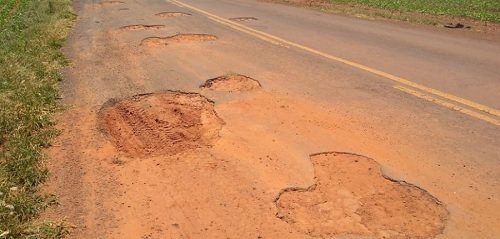 Situação da rodovia entre Terra Boa e o distrito de Malu. Depois da queda da ponte do rio Catingueiro, aumentou o volume de veículos pesados. Para desviar do buracos, a maoria tem de andar na contramão.