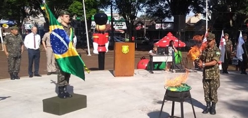 Teve queima de bandeira nacional nesta segunda-feira na praça São José. Nada de protesto, não. A queima de bandeiras inservíveis fez parte das comemoraçoes pelo Dia da Bandeira. Tudo organizado pelo Tiro de Guerra, como manda o protocolo.