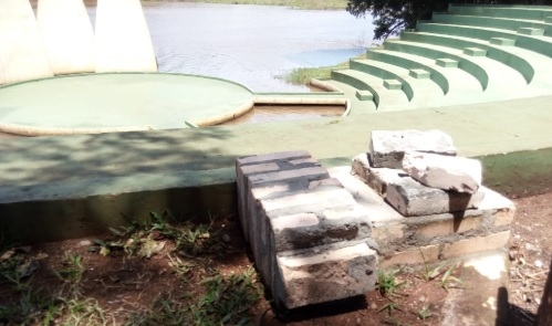 "Vandalismo na concha acústica do Parque do Lago. Totem com placa do nome dado à concha, em homenagem a Analis Ohara, foi destruido".