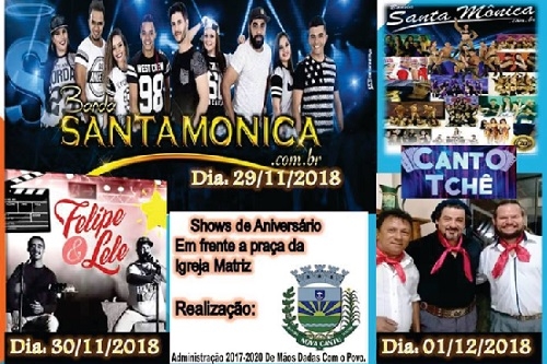 Nova Cantu completa 55 anos de emancipação nesta quinta-feira. Para comemorar, a prefeitura marcou três dias de shows em praça pública, Começa com a banda Santa Monica. Na sexta-feira tem Felipe & Lele e no sábado Canto Tchê. Nesta qunta-feira também acontece desfile cívico de aniversário (8h30).