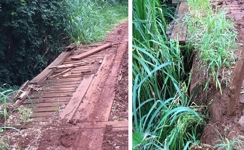 "A ponte encontra-se totalmente danificada e coloca em risco todos que a utilizam", escreveu no Facebook.