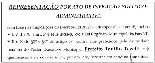 O mourãoense Willian Gomes voltou a protocolar na Câmara representação contra o prefeito Tauillo Tezelli.