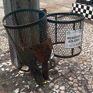 "Foto tirada quase em frente a prefeitura. É triste ver que as pessoas preferem destruir do que preservar um item para o uso de todos".