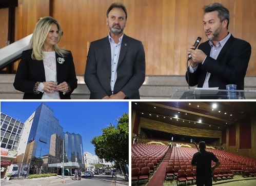 Olha o reitor da Unespar, o mourãoense Carlinhos Aleixo, outra vez discursando ao lado da governadora Cida Borghetti. Foi nesta quarta-feira, em Curitiba. Desta vez foi porque o governo do Estado repassou para a Unespar o antigo Centro de Convenções de Curitiba, que agora passa a ser a sede da Escola de Música e Belas Artes do Paraná, o câmpus I da universidade na capital. O local, lá nos anos 60, foi o Cine Vitória.