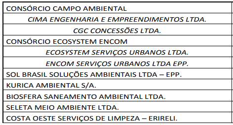 Sete empresas (cinco empresas e dois consórcios, para ser mais preciso) seguem na licitação para a coleta de lixo em Campo Mourão. A relação das habilitadas foi publicada nesta terça-feira, num despacho de 40 páginas assinado pelo prefeito Tauillo Tezelli. Isso mesmo: 40 páginas. Seis empresas foram eliminadas. Em disputa, um contrato que pode chegar a R$ 9 milhões por ano.