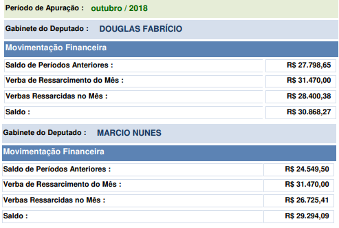 Saiu o relatório de despesas de outubro dos gabinetes dos deputados estaduais do Paraná. Os mourãoenses continuam "econômicos". Douglas Fabrício gastou R$ 28,4 mil e fechou o mês com sobras acumuladas de R$ 30,8 mil. Márcio Nunes consumiu R$ 26,7 mil e tem sobras de R$ 29,2 mil. Confira no que eles mais gastaram em outubro:
