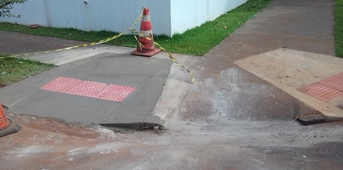 "O trânsito de cadeiras de rodas em Campo Mourão está muito intenso ou está sobrando verba na prefeitura. Av. Guilherme de Paula Xavier esquina com rua Devete de Paula Xavier".