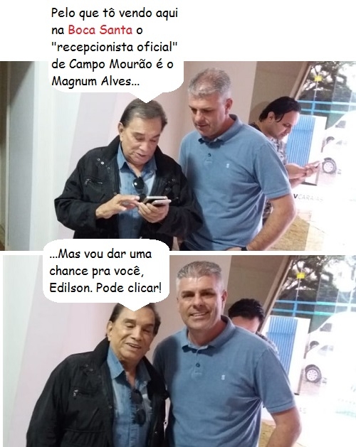 Quem esteve em Campo Mourão nesta quarta-feira foi o humorista Dedé Santana, um dos membros do inesquecível quarteto de "Os Trapalhões". Veio para participar do circo Ferrari, que está instalado na cidade. O vereador Edilson Martins não perdeu a chance de uma tietagem básica. Ah, por essa o Magnum Alves não esperava...