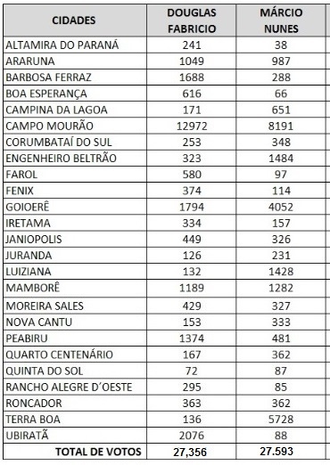 Douglas Fabricio foi o deputado estadual mais votado em seis cidades da região e Márcio Nunes em quatro.