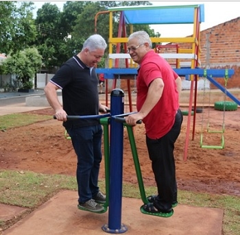 O deputado Douglas Fabrício segue indo a inaugurações de mini-arenas multiuso que liberou quando era secretário de Estado de Esporte e Turismo. Esta semana foi em Diamante do Norte e em Terra Rica. Em Diamante também foi entregue a academia ao ar livre. Aí Douglas e o prefeito Daniel Domingos Pereira não resistiram sem dar uma experimentada nos equipamentos.