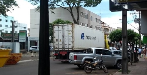 Carreta passa pela rua Harrison José Borges, no centro de Campo Mourão. A foto foi feita às 18h da última quinta-feira.