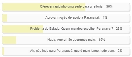 Para 56%, a gente deveria "oferecer rapidinho uma sede para a reitoria".