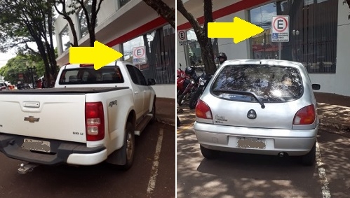 "Vaga reservada, sem cartão de identificação, do lado do banco Bradesco. É outro veículo na vaga de idoso que não era idosa. Muita gente usando cartão indevidamente".