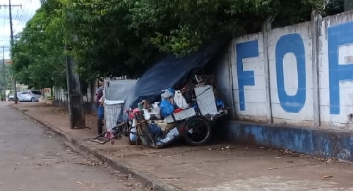 "Catadora de reciclável morando na beira do muro da C. Vale, no Lar Paraná"