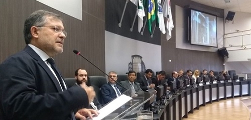 Tauillo Tezelli (PPS), prefeito de Campo Mourão, ao discursar na posse da nova mesa diretora da Câmara. Ele disse que em mandatos anteriores a prefeitura tinha até 13% para investimentos, o que hoje daria cerca de R$ 50 milhões. "Hoje nossa capacidade de investimento é zero", completou.