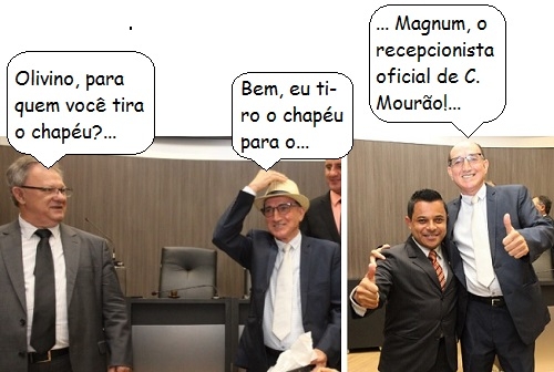 O primeiro dia útil do ano começou em Campo Mourão com a posse da nova mesa diretora da Câmara de Vereadores. Olivino Custódio assumiu a presidência no lugar de Edson Battilani, que passa a ser primeiro-secretário. Magnum Alves, o "recepcionista oficial" de Campo Mourão, é claro, não podia faltar no evento...
