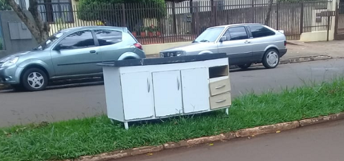 Pia velha jogada em canteiro central da av. Manoel Mendes de Camargo, um das principais vias de Campo Mourão.