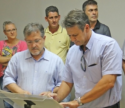 O clic é de terça-feira, durante evento na prefeitura para assinatura de ordens de serviços. O vice-prefeito Beto Voidelo ficou no meio do prefeito Tauillo Tezellil e do vice-presidente da Câmara, Jadir Pepita. Os três são do PPS, mas a eleição da mesa diretora da Câmara deixou um "mal-estarzinho" depois que Pepita não votou junto com a bancada do partido.