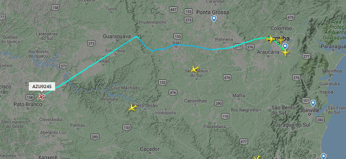 "Pato Branco, uma cidade menor que Campo Mourão. Que tal entrarmos nessa também? Fica a dica". Luiz Carlos, ao fazer um print do primeiro vôo entre Curitiba e Pato Branco, nesta quinta-feira.