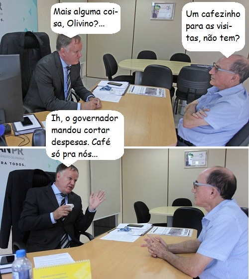 Os cliques são da audiência que o presidente da Câmara, Olivino Custódio, teve esta semana com o novo diretor geral do Detran, César Vinícius Kogut. Foi em Curitiba. Kogut é coronel da PM da reserva e atuou em Campo Mourão por vários anos.