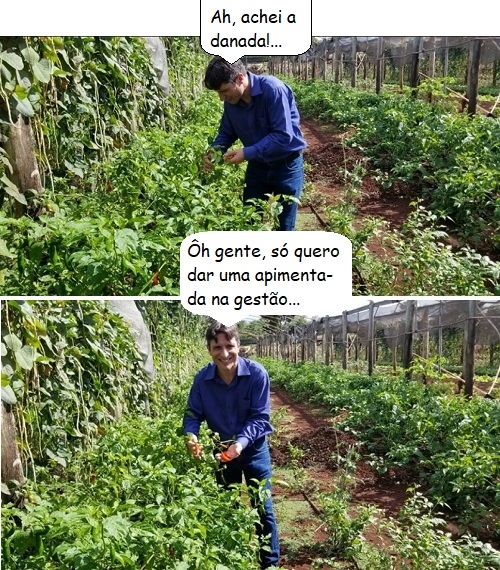 O clic é desta quinta-feira, em Engenheiro Beltrão, onde o prefeito Rogério Rigueti visitou a horta da Escola Agrícola. Conferiu a pimenta e tudo. O local atende a demanda de escolas, Abrigode Menores, Apae e outras instituições. Rigueti lembrou que quando assumiu a prefeitura o local estava abandonado.