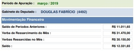 O deputado Douglas Fabrício teve em março R$ 30,1 mil em ressarcimentos. Foi um pouco menos que os R$ 31,4 mil que os gabinetes dos parlamentares têm direito todo mês. Com isso, o deputado de Campo Mourão já acumula no ano sobras de R$ 12,3 mil. As informações estão no Portal da Transparência da Assembleia Legislativa.