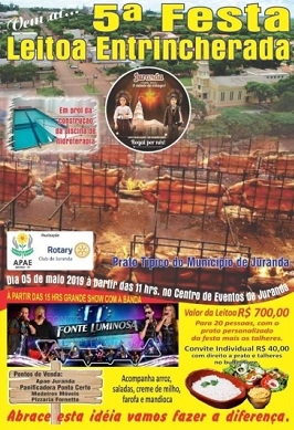 Juranda - Acontece neste domingo a 5.a Festa da Leitoa Entrincherada. A promoção é da Apae, com apoio do Rotary. O prato típico custa R$ 40. Há opção de comprar a leitoa inteira, por R$ 700.
