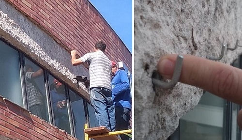 A prefeitura de Campo Mourão começou, enfim, a arrumar a fachada do Teatro Municipal. Parte do revestimento cedeu, lembra, em maio do ano passado. Desde então, um tapume foi colocado por lá por medida de segurança. O pessoal da própria prefeitura colocou grampos que servirão de reforço. Agora será feita dispensa de licitação para contratar mão de obrar para repor o revestimento caído.