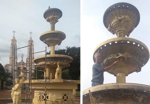O chafariz da praça Getúlio Vargas está sendo restaurando. O trabalho vem sendo executado por Francisco Hernandes, o maior "faz-tudo" da cultura mourãoense. Ele canta, dança, interpreta, apresenta, faz stand up... No Auto da Paixão de Cristo (quando tem) trabalha na montagem do palco e é um dos atores (quase sempre o Caifás). E, agora, como se vê, nas horas de folga, restaura chafariz...