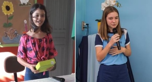 Olha aí as estudantes de Campo Mourão que foram premiadas no 10º Concurso de Desenho e Redação da Controladoria Geral da União. Luna Florêncio Garaluz, da escola municipal Caetano Munhoz da Rocha (Alto Alegre) ganhou na categoria desenho (5º ano). Já Laura Dallefe Nespolo, da escola Educare (6º ano), foi premiada na categoria redação. O prêmio é relativo a 2018, quando o tema foi "Ser honesto é legal". Cada uma ganhou um tablet. As professoras delas, notebooks.