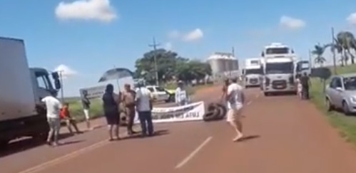 A rodovia foi fechada neste sábado no trevo de Goioerê.