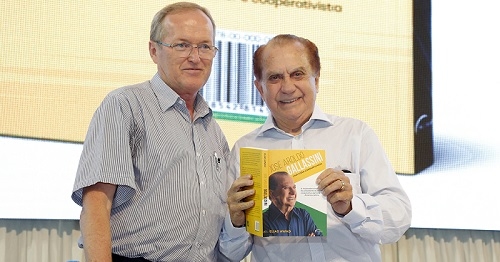 Supresa na assembleia geral da Coamo desta sexta-feira. O evento inclui o lançamento de livro com a biografia do presidente e fundador da cooperativa. O título é longo: "José Aroldo Gallassini – Uma Visão Compartilhada, a inspiradora trajetória do presidente da maior cooperativa agrícola da América Latina". O autor é o jornalista, escritor e palestrante Elias Awad.