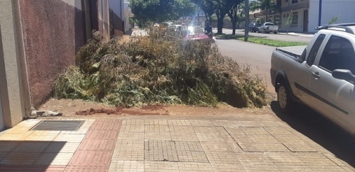 Calçada obstruída na av. José Custódio de Oliveira, em Campo Mourão.