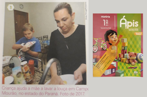 Tem professora da rede municipal ilustrando livro didático distribuído nas escolas de Campo Mourão. A professora Paula Portugal saiu em foto junto com o filho, Guilherme, no livro de história do primeiro ano. O capítulo trata do trabalho infantil e destaca que "fazer tarefas de casa é muito diferente de trabalhar para ajudar no sustento da família".