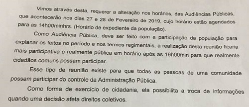 O comerciante Luiz Cunha de Almeida pediu que a Câmara de Campo Mourão mude o horário da audiênica pública.