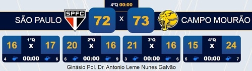Campo Mourão foi ao ginásio do Morumbi nesta quarta-feira e venceu o time da casa por 73 a 72.