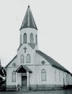 A primeira igreja, no caso, é a antiga paróquia São José, de madeira, que ficava onde hoje está a Catedral.