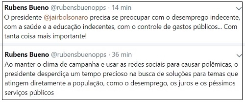 O deputado Rubens Bueno disse nesta quinta-feira que o presidente Jair Bolsonaro deveria ser preocupar com outras indecências.