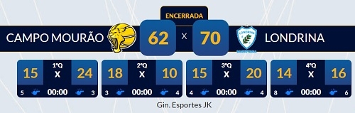 Campo Mourão perdeu de 70 a 62 para o Londrina, nesta quinta-feira, na Liga Ouro de Basquete.