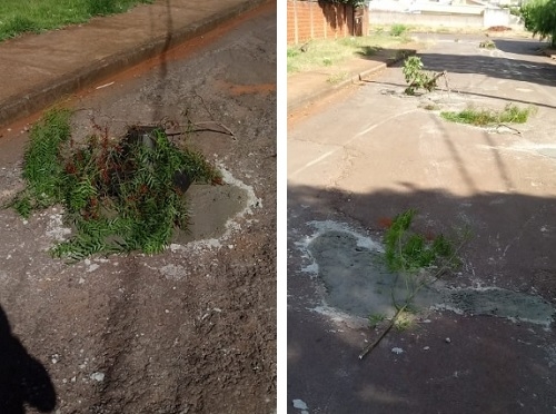 Rua Mario Castardelli, em Campo Mourão. Novo jeito de tapar os buraquinhos. Darcy do Táxi