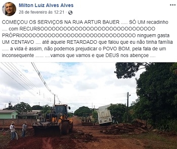 O prefeito de Campina da Lagoa, Milton Luiz Alves, não perde a chance de uma polêmica nas redes sociais.
