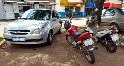 "Duas motos na vaga de um veículo (ou dois?). Olha a situação do carro! Isso em plena av. Capitão Índio Bandeira, área central de Campo Mourão".