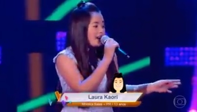 Lembra da menina Laura Kaori, de Moreira Sales, que iria se apresentar no "The Voice Kids"? Chegou o dia. Ela se apresentou neste domingo, no penúltimo dia de audição às cegas. E foi com nada mais, nada menos que "Águas de Março", de Tom Jobim, imortalizada na voz de Elis Regina. "Venho de Moreira Sales, Paraná", disse a cantora de 13 anos, escolhida para o time da dupla Simone e Simaria.