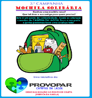 O Provopar local iniciou a campanha "Mochila Solidária".