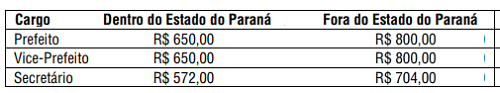Para prefeito a diária é de R$ 650 dentro do Estado e de R$ 800 para fora (Brasília, basicamente).