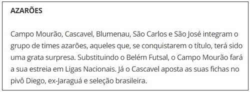 Se Campo Mourão for campeão da Liga Nacional será "grata surpresa".