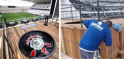 Foi notícia nacional que o Corinthians inaugurou piscina em camarote em sua arena, em Itaquera. A ideia é que o torcedor vá ao estádio horas antes do jogo e curta uma piscininha enquanto a partida não começa. O camarorte, é claro, tem várias outras vantagens. Detalhe: foi uma empresa de Campo Mourão que construiu a piscina. Sim, a Quevedo Engenharia. A piscina fica no camarote Jack Daniels.